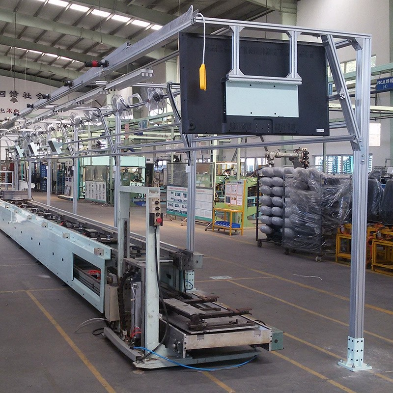 Self-flowing conveying system high-speed chain conveyor is mainly used for material transportation in assembly and processing production lines. Its conveying principle is to utilize the acceleration function of the high-speed chain, making the supporting worktable for the goods run at a high speed. It stops at the corresponding operation position through the stopper.